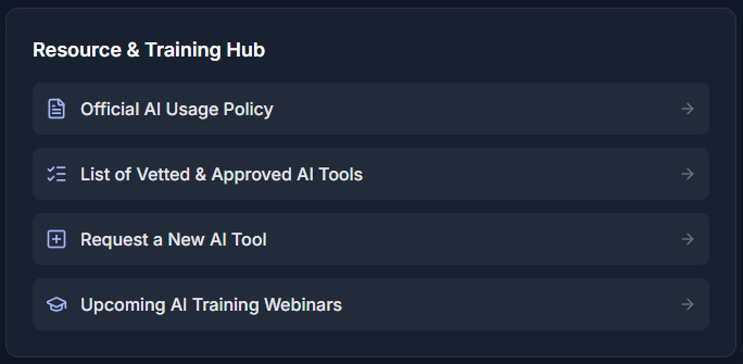 Get a personalized AI hub showing your approved tools, compliance status, and learning path.